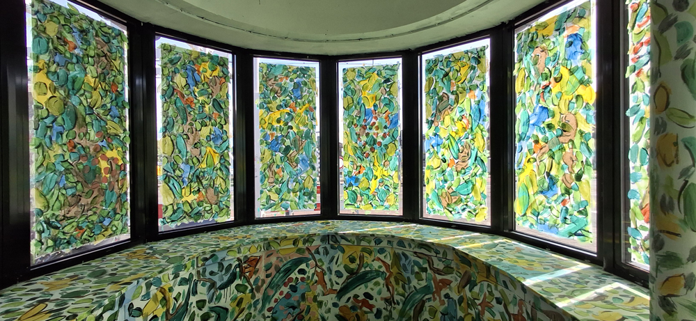 Installatie met 75 werken – Titel: De tijd der veranderingen – porselein op houten panelen – 310 cm x 120 cm – 2020
